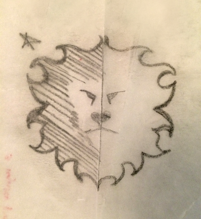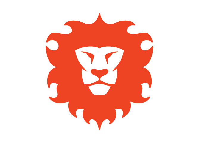 Illustration depicting a lion with a flaming mane for a proposed package design for the European market.